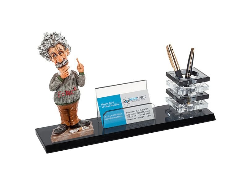 מעמד קריסטל "איינשטיין" עם כוס לעטים ומעמד לכרטיסי ביקור