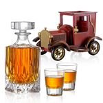 סט מתנה דיקנטר ויסקי 700cc עם שתי כוסות במעמד מכונית עץ עתיקה