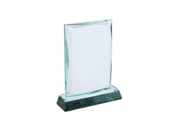 מגן מעוצב מזכוכית קריסטל עם בסיס מלבני עשוי שיש מהודר. מתנה מושלמת לכולם.
